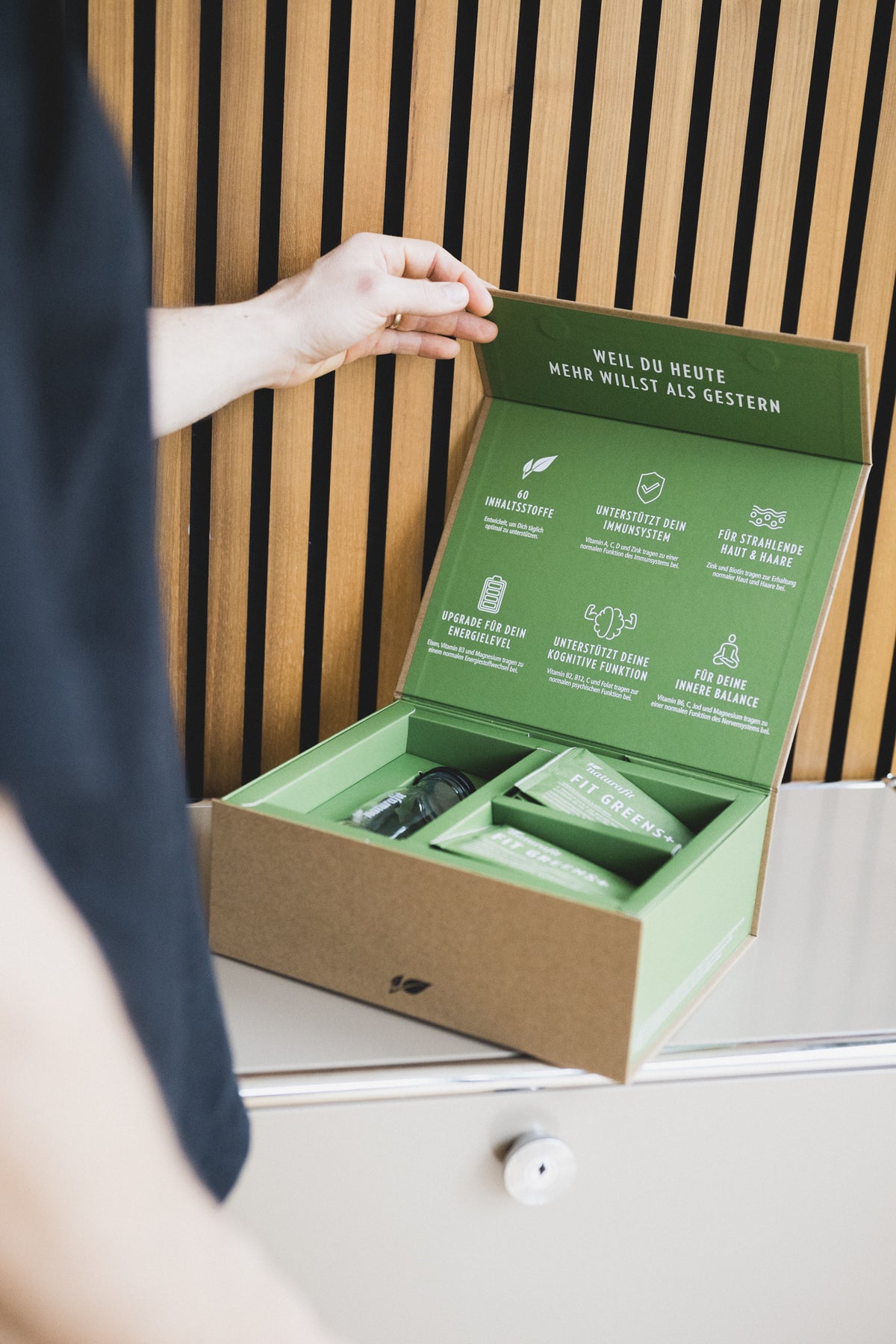 Entwickelt, um Dich täglich ganzheitlich zu unterstützen: Vitamine und Mineralstoffe stärken dein Immunsystem, fördern Haut, Haare und Energie und helfen dir, mental klar und innerlich im Gleichgewicht zu bleiben. In sieben Tagen entsteht daraus mehr als nur eine Routine – ein kleines tägliches Ritual, das Dich Schritt für Schritt zu mehr Ruhe, Fokus und natürlicher Strahlkraft führt.