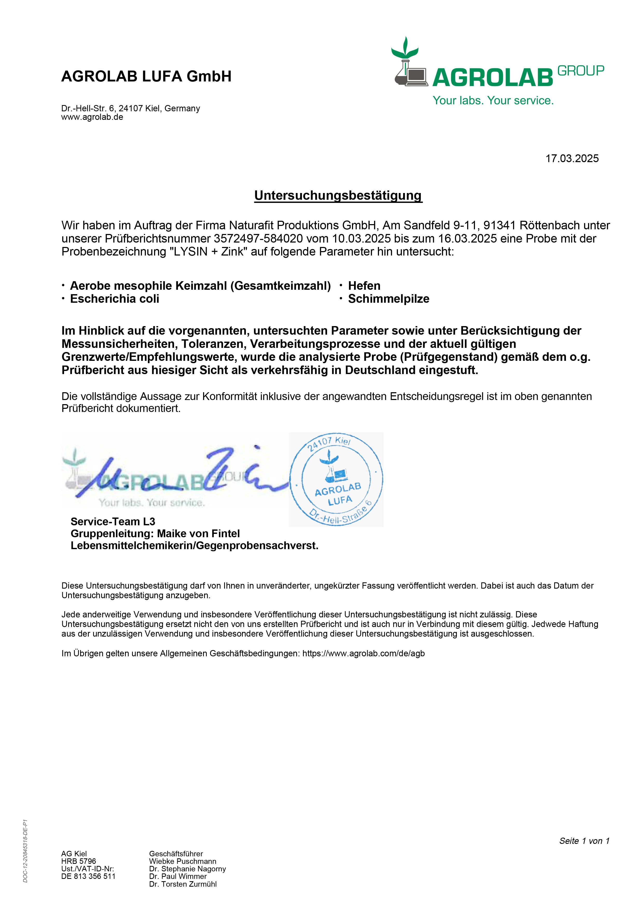 L-Lysin, Überzugsmittel Hydroxypropylmethylcellulose (Kapselhülle), Zinkcitrat