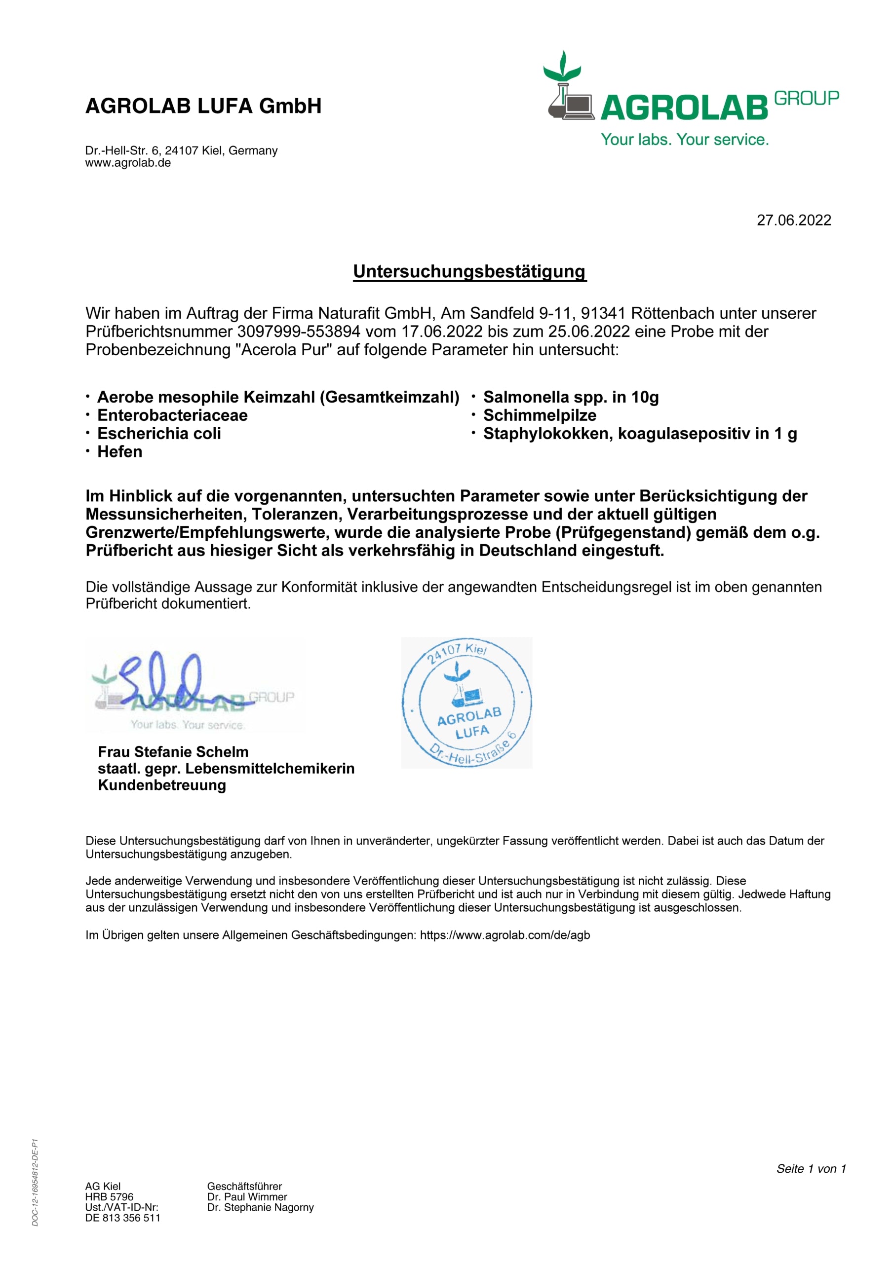 Vitamin C erhöht ebenso die Eisenaufnahme. Neben Vitamin C sind aber unter anderem auch Provitamin A sowie die Vitamine B1 und B2 in der Acerolafrucht enthalten. naturafit Acerola Pur enthält reinen, schonend gewonnenen Acerola-Extrakt.