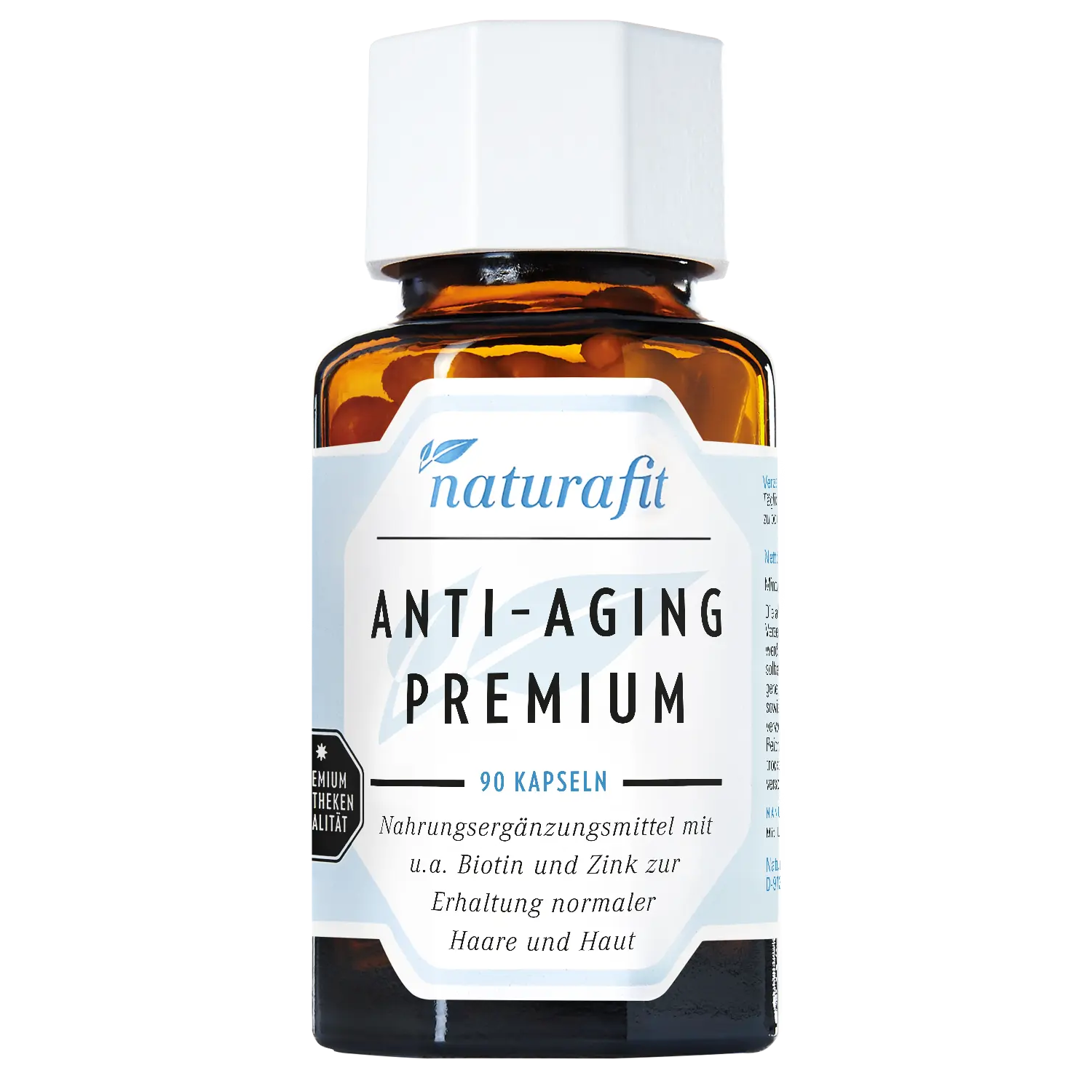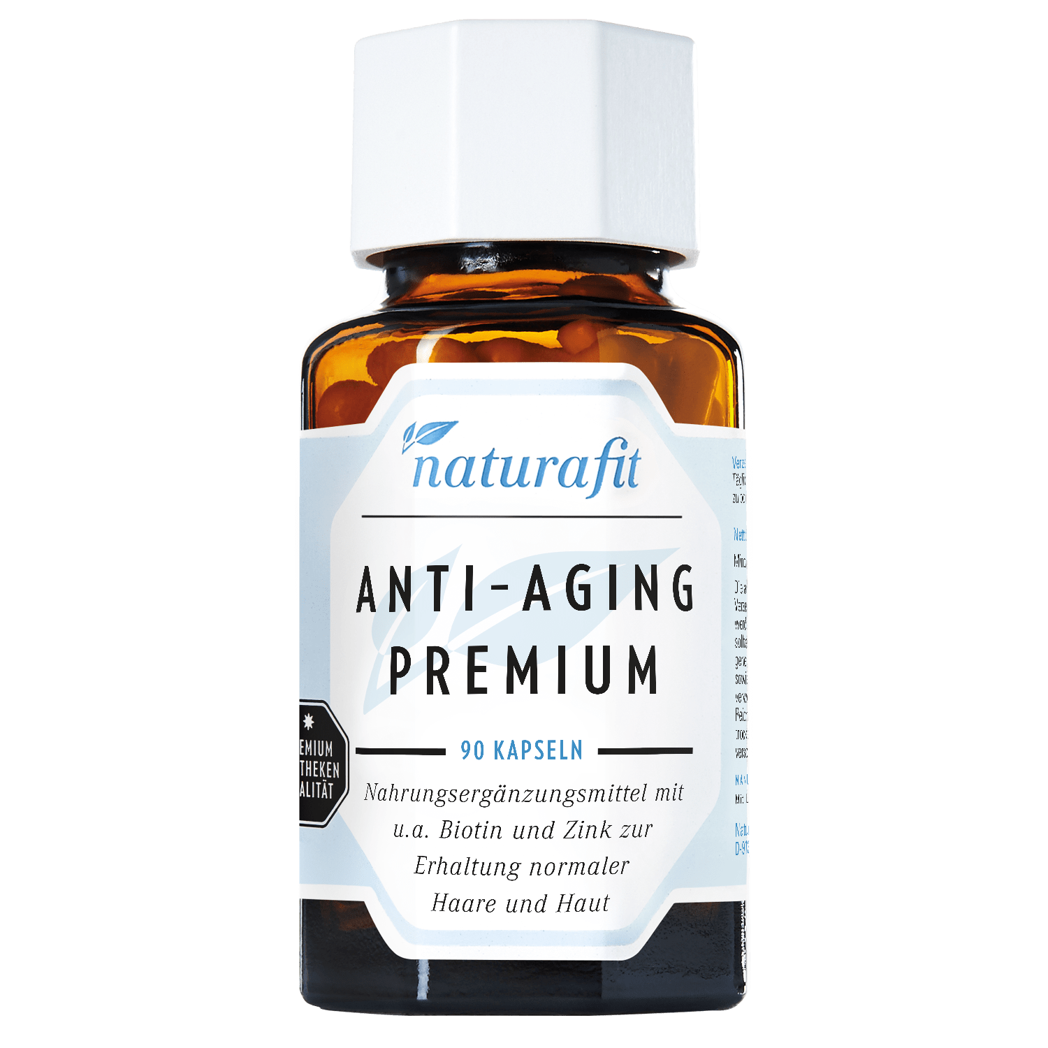 naturafit Anti-Aging Premium enthält  Nährstoffe, welche optimal auf Deine Haut¹ abgestimmt sind und ist frei von zusätzlichen Aromen: