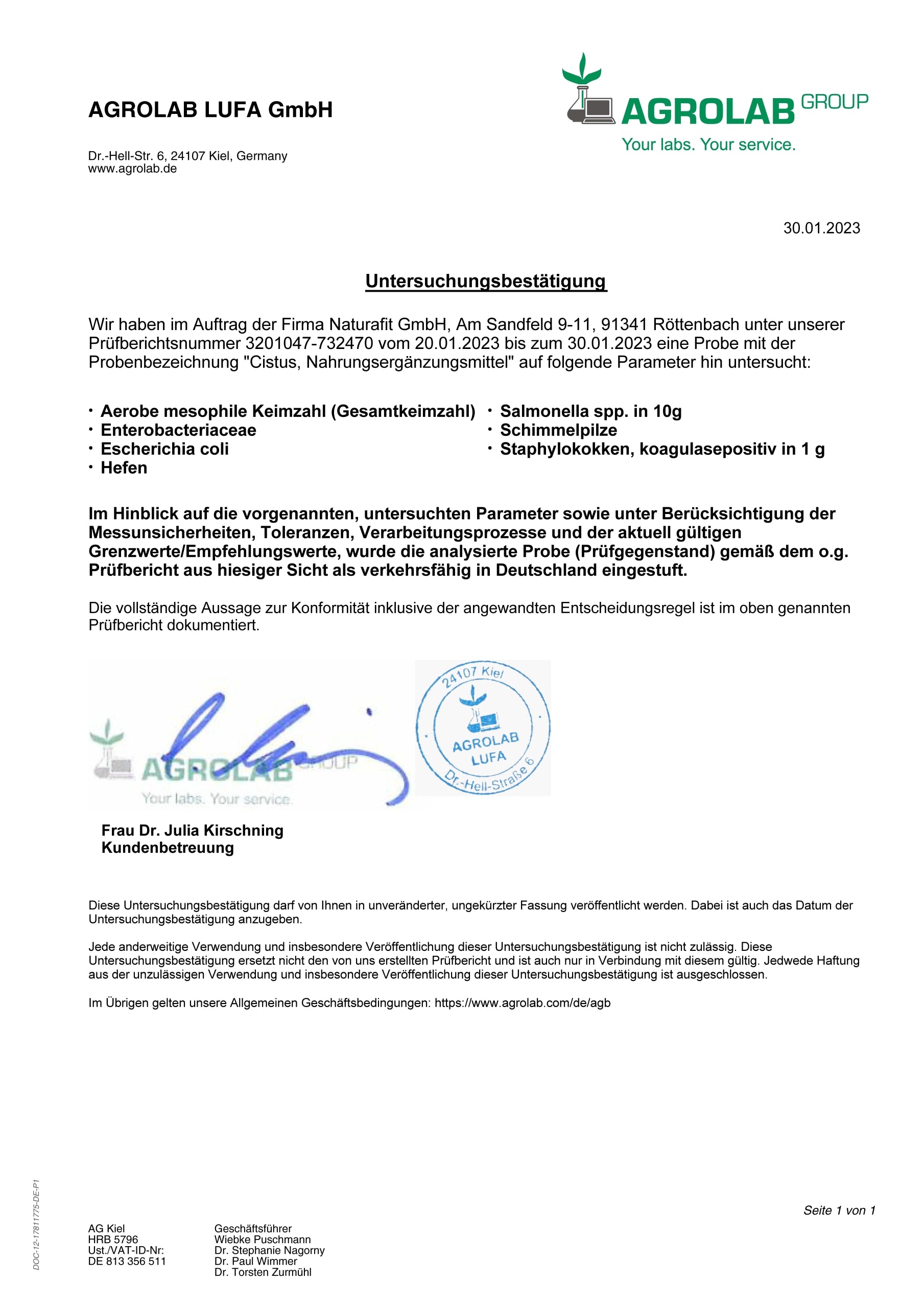 | Cistus-Extraktenthält Polyphenole | 400 mg260 mg | / |
