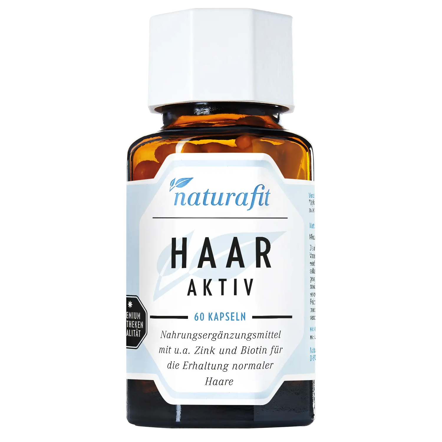 Deine Haare sind die Basis für ein gesundes Selbstvertrauen und ein gutes Körpergefühl. Deshalb haben wir für Dich naturafit Haar Aktiv entwickelt. Es besteht aus speziellen Mikronährstoffen, die den Zellstoffwechsel der Haarwurzel stärken können1. Unser Produkt kann vorbeugend vor allem aber auch bei akutem Haarausfall (nicht bei erblich bedingtem Haarausfall) eingenommen werden.
