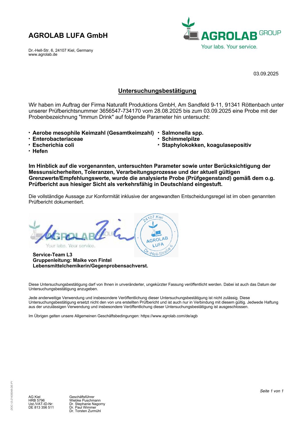 Mit dem IMMUN DRINK von naturafit versorgst Du Dich mit 24 wichtigen Mikronährstoffen – diese sind ideal die Bedürfnisse während der Erkältungssaison*, bei hoher Alltags- oder körperlicher Belastung abgestimmt.**