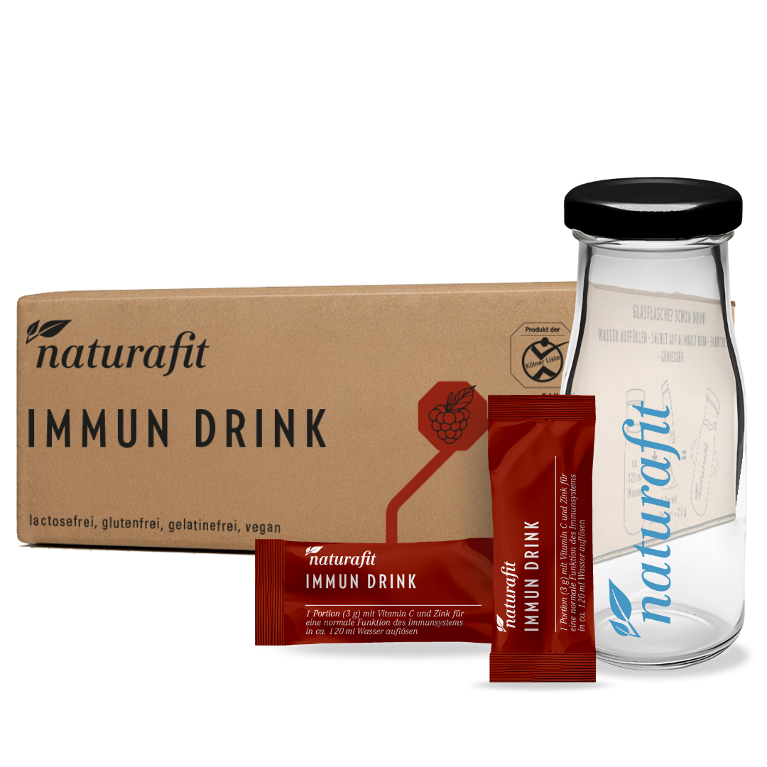 Mit dem IMMUN DRINK von naturafit versorgst Du Dich mit 24 wichtigen Mikronährstoffen – diese sind ideal die Bedürfnisse während der Erkältungssaison*, bei hoher Alltags- oder körperlicher Belastung abgestimmt.**