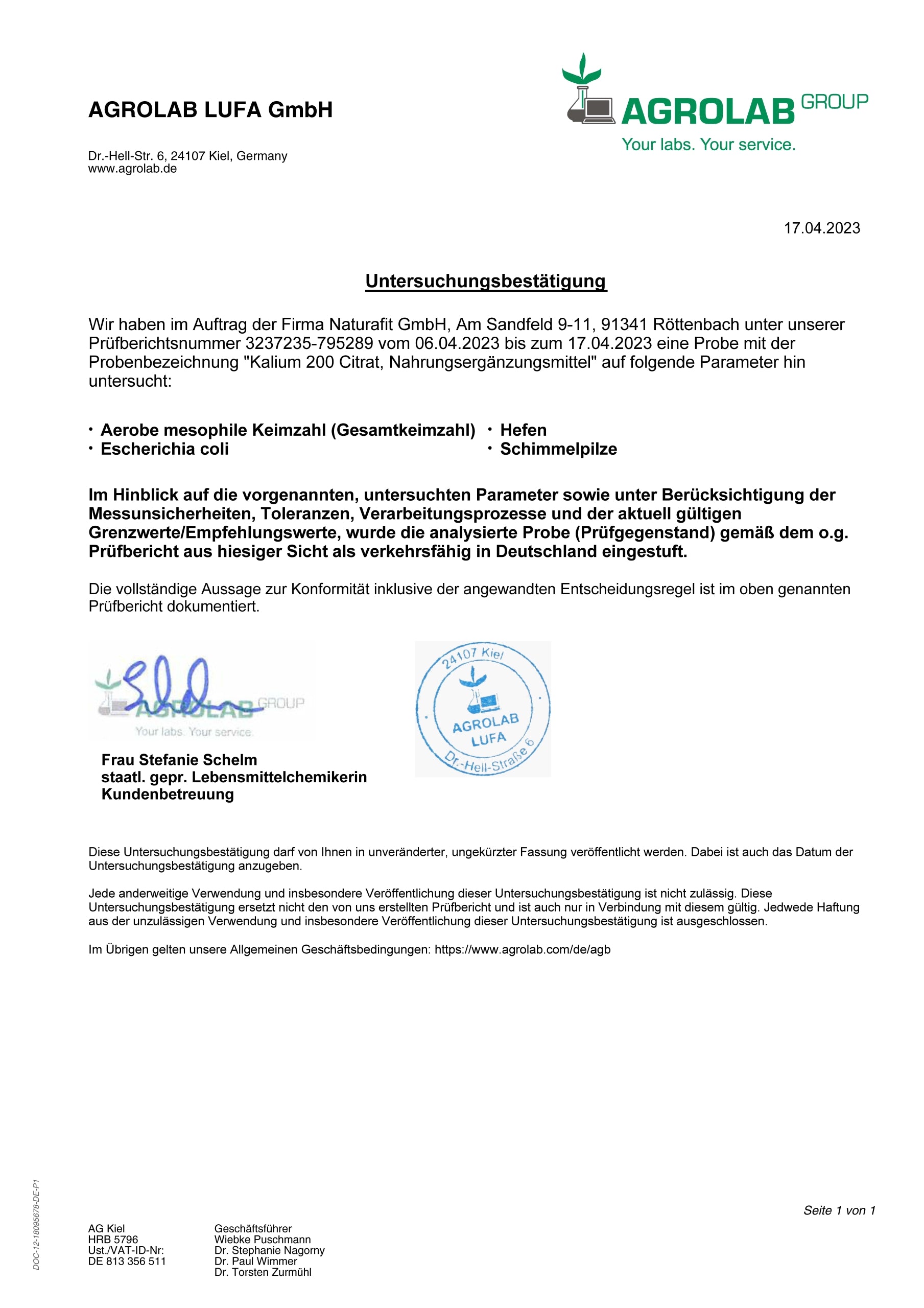 - naturafit Kalium 200 Citrat enthält 200mg reine Kaliumionen und ist somit individuell dosierbar