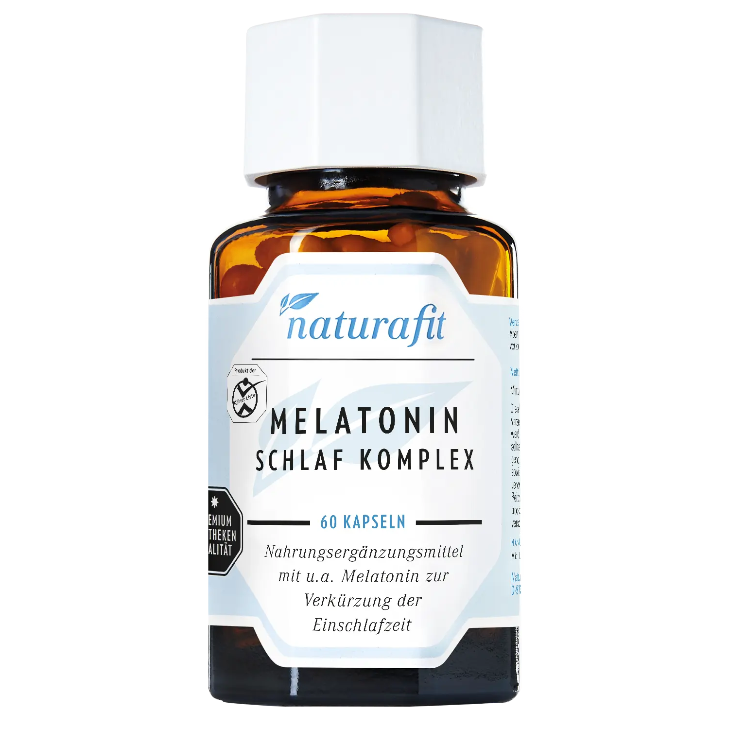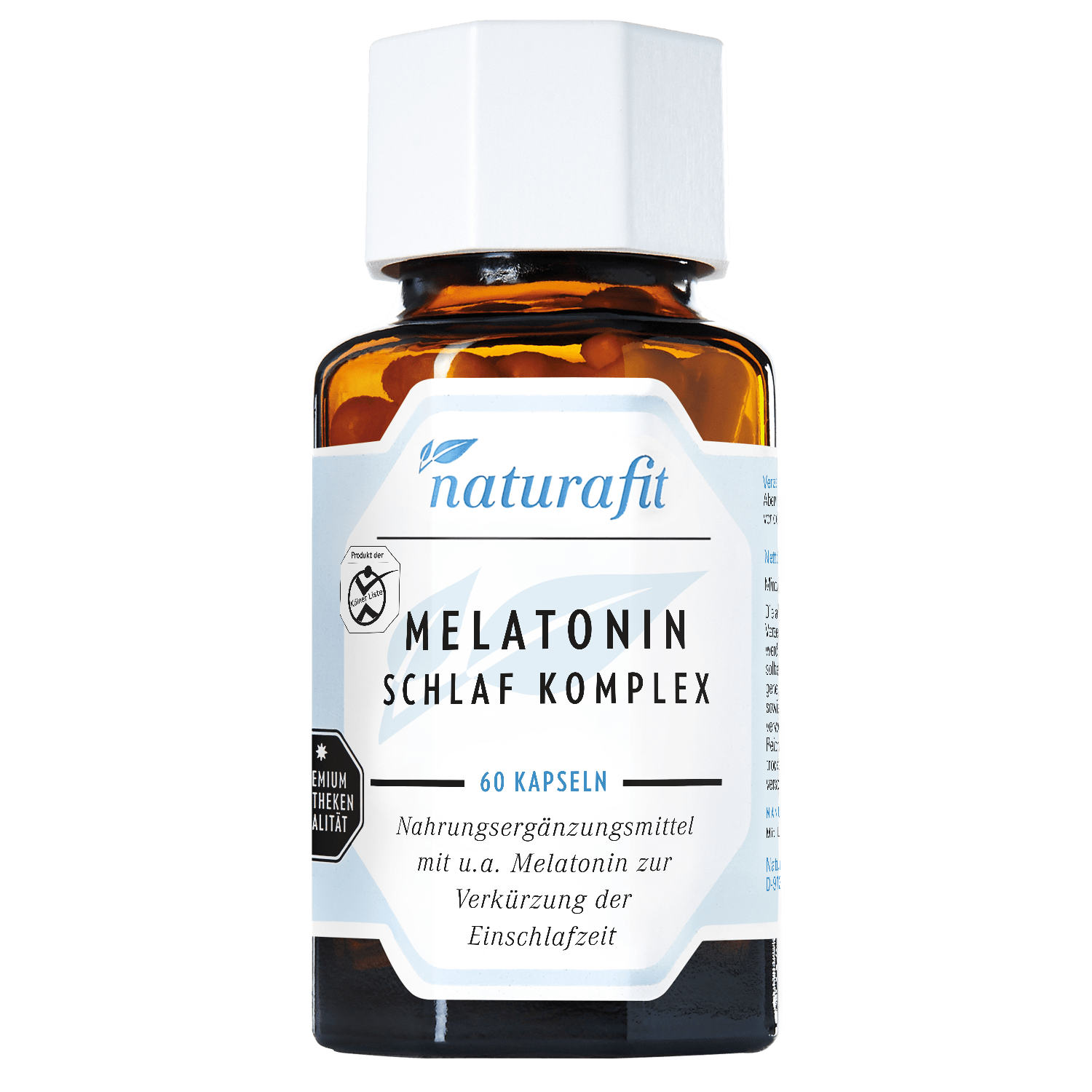 Ein tiefer und erholsamer Schlaf ist die Grundlage für neue Energie und Wohlbefinden. Mit dem naturafit Melatonin Schlaf Komplex schenkst Du Dir und Deinem Körper die nötige Ruhe und Entspannung, die er benötigt.Das Produkt enthält u.a.:- Melatonin, dieses trägt zur Linderung der subjektiven Jetlag-Empfindung bei und trägt dazu bei, die Einschlafzeit zu verkürzen¹