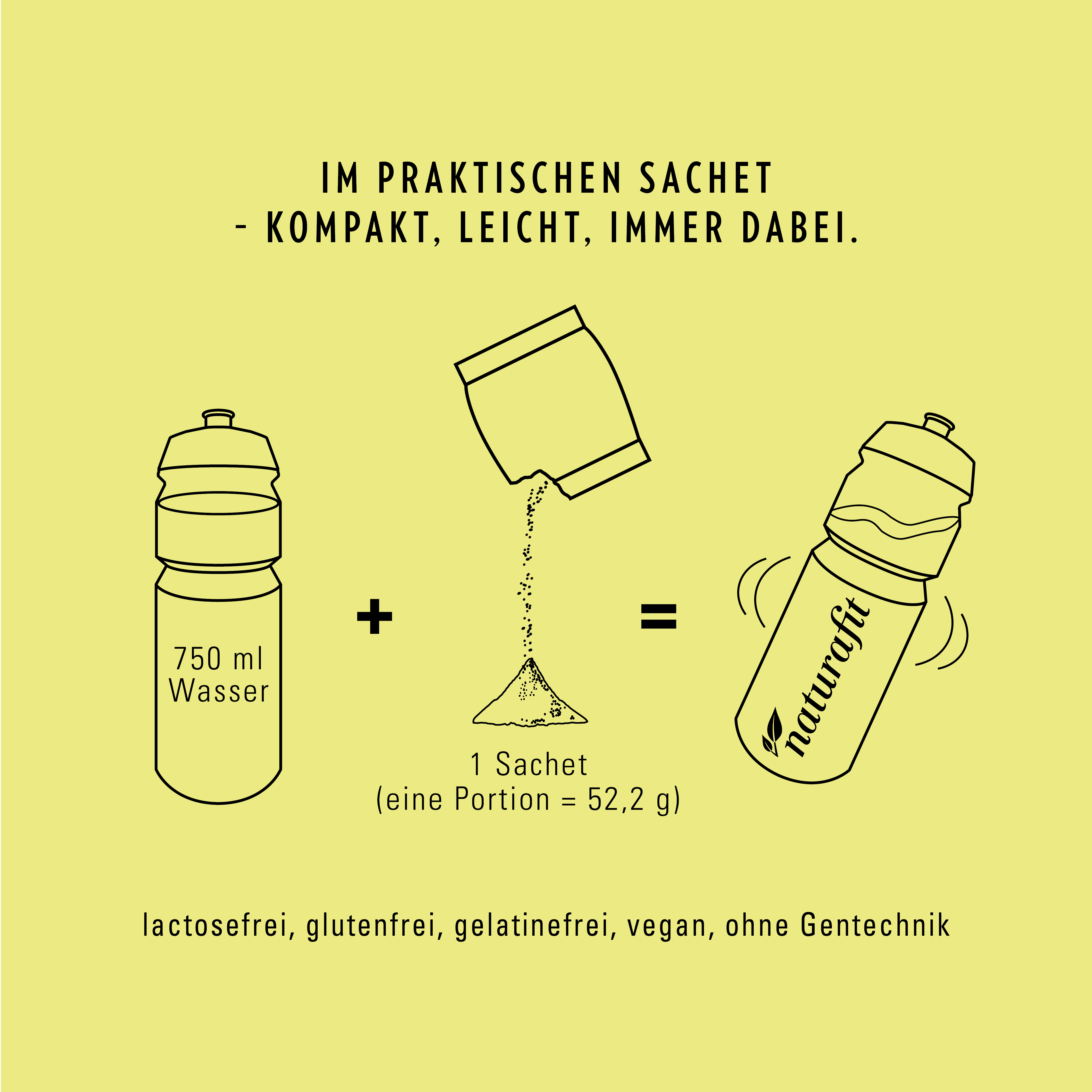 Ohne künstliche Aromen, Farbstoffe oder überflüssige Süßungsmittel – der Drink ist vegan, glutenfrei, lactosefrei und frei von Gentechnik.